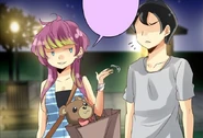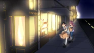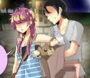By the time John and Seraphina leave the mall, it's already dark out. They check out the nearby bus stop and are discouraged by the crowd of commuters waiting. John proposes they cross the park to the nearest alternative. On the way, John gets a funny feeling that they're not alone, though he says nothing at first. Seraphina has a laugh over how John's big show at the booth ended with him crying for help. John didn't think it was funny how that man had to refund that lady over some dumb power difference. Seraphina ribs him and suggests he should have been more careful not to put himself at risk like that. He admits she's right, and asks if she's come up with a name for her new stuffed animal. She asks if he has one in mind, and he says "John" would be a good fit.
