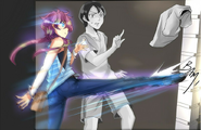 The awkward mood takes a serious turn when John suddenly looks over his shoulder. Seraphina sees nothing and asks what the problem is. John grabs her wrist and tells her they needed to get going. Seraphina follows his lead despite her confusion. They stop after turning a corner. Seraphina watches as John fishes out his new tacky shirt. When he tosses it forward, it stops in midair instead of falling to the ground. He's about to exclaim about how they're being shadowed by somebody invisible, but Seraphina has already sprung into action. She stops time and kicks the would-be stalker to the other side of the street. Seraphina gives John just enough time to finish his sentence before she tells him she doesn't want to stick around. He's all for getting back to fleeing.