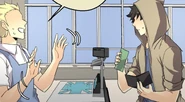 Once his shift is over, Adrion leaves work still reeling from what he went through earlier. It becomes apparent that his day is far from over when he sees that John stuck around U-Mart. John asks Adrion if he has the time to talk, which leads to the two sitting down on separate benches. John asks what Adrion is doing working on a weekday. Adrion tells him that he works to alleviate financial problems at home, and asks in turn why John has returned from Wellston. After hearing that John was suspended for excessive violence, Adrion inches away. John swears that he didn't come to start anything, and talks about how he's been reflecting on everything horrible he's ever done. He realized that through it all, Adrion was the only true friend hes ever had. John then apologizes for repaying such loyalty with abuse. Adrion was shocked that John was showing remorse, but became aware that the former King had been acting much calmer than he had in the past. Adrion states that he's simply glad that John seems to be doing better. John wonders to himself if that's really the case.