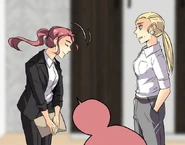 At the Bureau of Authority, Valerie is reclining in her office chair. She examines her phone and notices two missed calls from Arlo. She hears two knocks at her door and gives permission to enter. The door opens and Kassandra enters. The two women greet each other. Valerie asks if Kassandra was chosen for her own (Valerie’s) current assignment, and Kassandra nods. Valerie congratulates Kassandra.