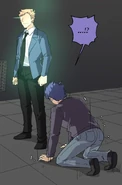The hothead's violent streak is instantly quelled when he drops to his knees, as though a will stronger than his own commanded him to do so. The other two captives don't understand what could have stopped him in his tracks, but the terrifying truth begins to dawn on the fallen fellow. Orrin tells him that he's got no patience for youngsters who think that having a bit of power over others enables them to tune him out. He then forces the other two to get on their feet, giving them a taste of true helplessness. They march towards their fellow captive and grab him. Rein restrains him while he's throttled by the red-haired abductee. Orrin watches contentedly as the three carry on, unable to help themselves. It ends only when the neck of the purple-haired young man snaps. He falls to the floor. The other two, now freed from Orrin's control, look in horror at the corpse their hands made. Having made his point, the executive resumes extending his offer.