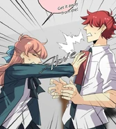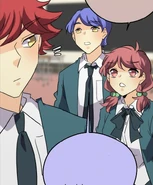 They, along with Remi, meet with him. Kuyo pulls up a picture of the guy and identifies him as Kayden, a guy he goes to university with. Kuyo describes his peer as the last guy he'd expect to be involved with ability disabling and kidnapping. Then again, this report does confirm that Kayden is in fact keeping big secrets. Remi chimes in and says that there's still plenty that they don't understand about Spectre. Blyke adds that for all the danger the organization poses, John and Seraphina seem to be on good terms with Kayden. Kuyo suspects that there's conflict within Spectre's upper ranks, and that John and Seraphina have gotten themselves caught in the power struggle. Kuyo believes that this information will help him towards squeezing the rest of the story out of Kayden later. The high schoolers are a little disturbed by the phrasing he uses.