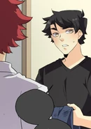 Later, John enters the dorms and prepares to break it to Blyke that his suit didn't make it back in one piece. He walks over to Blyke's room, wherein an intense exchange occurs. Remi forcefully gives Unordinary to Blyke, who's disappointed that she read it. Remi is apologetic about giving into temptation, and astonished that she couldn't put the book down. Blyke supposes that the book didn't do anything to her, other than turn her into a zombie. Remi begins to insist that she really enjoyed the story when they hear a knock. Blyke hastily goes to answer it, neglecting a detail that makes Remi panic. John and apologizes for not bringing the whole suit, but his eye catches something familiar. Blyke is horrified to realize that the banned book was still in his grip. Remi pulls it away, far too late to hide it. Both are hoping John it escaped his notice. Unfortunately, he promptly asks where it came from. Blyke deflects the question and tells him not to worry about the suit before slamming the door. John stands stunned. It's been a while, but that book was unmistakably the one written by his father.