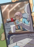 The next day, another Safe House session comes to a close. As Blyke bids farewell to the other members, Evie and Roland come up to him and ask about the frequent absences of John and Seraphina, and what it means for the planned self-defense course due to start this week. Blyke only says that they've had a lot on their plate lately, but they could be expected back soon. They take his word for it, and go on their way. Blyke then notices the one student remaining behind; it's Remi, sound asleep at her desk. She wakes up to the sight of Blyke, who tells her that they won't be able to make excuses to hide the ongoing Spectre conspiracy their friends are in for much longer. Remi is worried for their well-being, while Blyke brings up the so-called interview they needed his suit for. He's convinced that it's a cover for some sort of deal going down, Remi wonders why they wouldn't just share it with the rest of them. Blyke agrees, seeing as the disaster in Rowden gave them plenty of right to be in the know. Remi's drowsiness derails the whole conversation, prompting Blyke to ask if she's tired because she stayed up late...with her nose in a certain book.