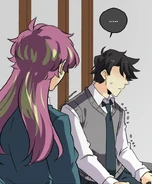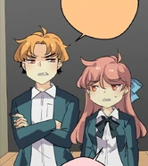 After school, Remi and Isen enter Blyke's dorm. Isen is irate that his friend not only looked inside the book, but actually got caught with it in her possession. Remi can't apologize enough. When they open the door to Blyke's room, they see John and Seraphina had already arrived. Now that everybody was here, business could commence. After Blyke tells his friends of the deal he worked out, he and John briefly argue about who should go first. Seraphina steps in and says that she and John wouldn't mind talking first. She tells of the ability recovery machine with which Spectre used to ensure the compliance of those they disabled. She then details of how they planned to steal it, and how John destroyed it when one of the leaders thwarted their scheme. Long story short, the duo were only half-recovered, and they need to replace a certain jacket they couldn't retrieve.