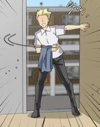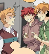 Grayson welcomes Remi, Blyke, and Isen to an investment property his successful parents own, and highlights its many features. He boasts that it's a great starter base for vigilantes like them, especially when compared to the dorms at Agwin High. The trio are a bit daunted by what's essentially a miniature mansion. Remi asks Grayson to send her regards to his parents for being open-minded enough to give vigilantes a place to hide from the law. Grayson tells her that they actually don't know about what he's doing, and that it needed to stay that way. Irate, Blyke and Isen immediately start telling him off about being so clueless. They angrily tell Grayson that using other people's resources for breaking the law was just asking for trouble. Grayson promises that his parents wouldn't even notice, which doesn't convince them. Remi decides that they've gotten out of line, and drags them off to the side. She scolds them for being so ill-mannered, and tells Blyke that Grayson not knowing what he's doing is something they have in common with him. They were in no position to be choosy about their allies, and they were responsible for showing any novices the ropes before improving themselves. Remi then asks if Isen perceived any indication that Grayson was playing them. He didn't, which she asserted was reason enough to welcome their brave host into their fold. Grayson nearly fainted from hearing Remi praise him, which sickened the other boys. With that settled, they just needed to know how long they had before Grayson's folks got wise. It would be months, at least, which gave them plenty of time to set up operations.