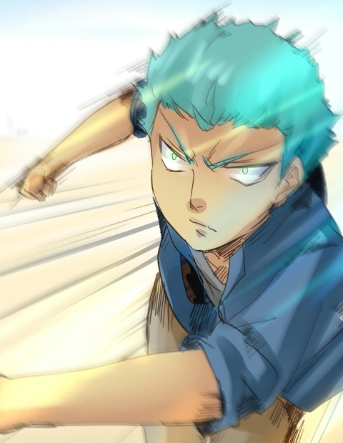 Gou is a tan-skinned teenager with short turquoise-coloured hair and eyes. During the recent Turf War, he wore beige three-quarter length shorts and a blue shirt over a grey t-shirt. Gou's eyes glow with a bright green hue when he utilises his powers.