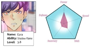 Ezra is the smartest of the Royals, or at least is the first to notice things. He serves as the team's main strategist, meaning he'll try to attack from a distance and demoralize enemies with taunts. He soon became aware that Blyke was no pushover, and realized that John's coaching could result in their defeat. He's also well-versed in the recent history of Wellston's Royals.