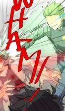 It was here that the Royals revealed that they didn't actually value sportsmanship. Skylar engaged Blyke while his attention was diverted. An alert from John kept Blyke from getting too badly hurt, but Myles did manage to heal Kree uninterrupted. Skylar scoffed when Blyke called foul, as he should have known they wouldn't be chased out of their own turf so easily. John gave away another sneak attack from Ezra, but the Royals still had plenty of opportunity to mess him up now that they odded the evens. Or so they thought, as not only was Blyke good at evading their attacks, he was getting sound battle advice from the loudmouth in the stupid cap. After the suggestion to subdue Myles proved useful, John told Blyke that the slow-charging, two-shot limit attack should be the next thing he focused on. Ezra was astounded at how observant the fellow in the sidelines appeared to be, and reasoned that it was due to some sort of ability that boosted his tactical faculties. He called for the others to help him shut John up before he ruined things for them all. At once, Kree and Skylar rushed towards John. They were repelled by another wave of energy from Blyke, who took his "ally" aside and berate him for just standing around. Kree took advantage of the distraction to floor Blyke with another punch. He smugly looked at John's scared face. But John's expression soon twisted into one of anger. His eyes lit up, and he used his true ability to undergo some familiar-looking transformations.[3]