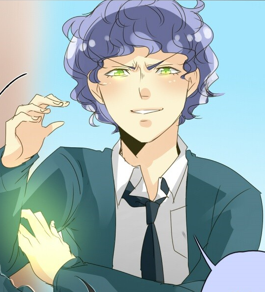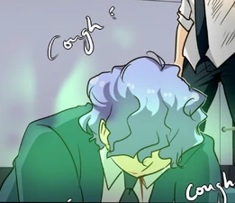 Tanner is a tall fair skinned student with bluish purple curly wavy hair and somewhat small lime-green eyes with visible eyelashes. He is seen wearing a Wellston school uniform without a vest. He possess speech bubbles the same color as his hair but lighter. His eyes glow lime green when his ability is activated.