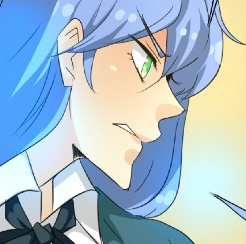 Yuline has sky blue hair with green eyes. She wears a girls uniform without the vest.